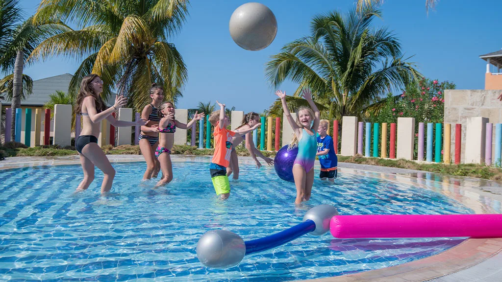 The resort opens directly onto a long stretch of white-sand beach with calm, swimmable water and views over Jardines del Rey. A free-form tropical pool and separate kids’ pools give you plenty of places to cool off during the day.